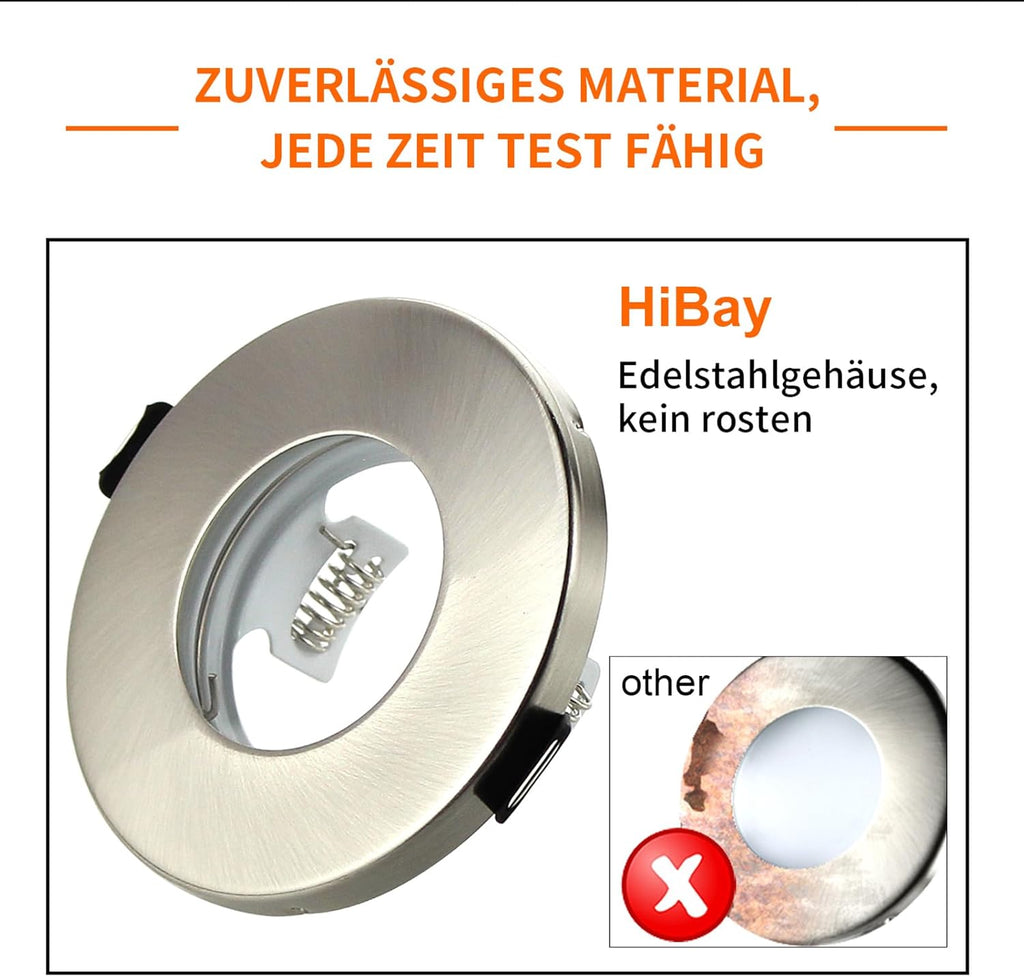 HiBay LED Einbaustrahler Set IP44 GU10 Badezimmer Rund Edelstahl Gebürstet 230V 5W inkl. LED Spot